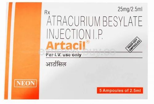 English Atracurium Besylate is a neuromuscular blocking agent used as an adjunct to general anesthesia to facilitate endotracheal intubation and to provide skeletal muscle relaxation during surgery or mechanical ventilation. It works by intercepting the transmission of nerve impulses to the skeletal muscles. Because it paralyzes respiratory muscles, it must only be administered by trained anesthesia professionals who can manage the patient’s airway and ventilation. It is strictly for intravenous (IV) use.