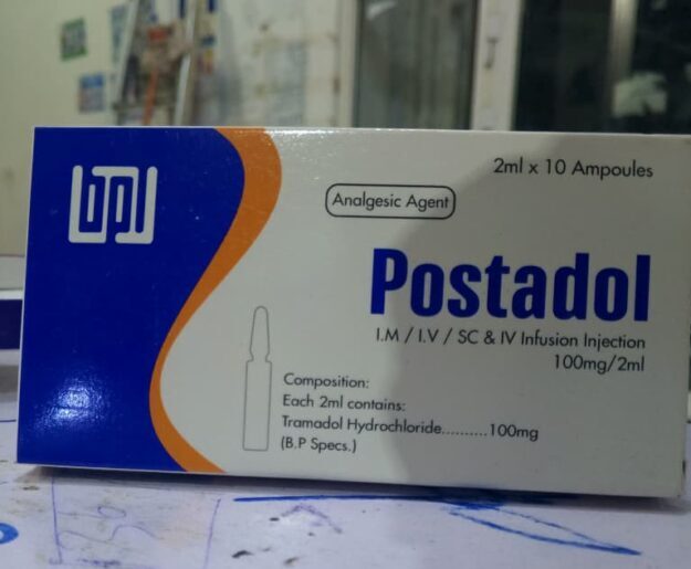 Kani waa Postadol, oo ah dawo xanuun baabi’iye xooggan oo loo yaqaan Tramadol Hydrochloride. Waxaa loo isticmaala xanuunada dhexdhexaadka ah illaa kuwa daran. Dawadan waxaa loo bixiyaa qaab mudis ah (irbad), waana inuu bixiyaa qof caafimaadka ku takhasusay oo keliya. Waa dawo halis ah haddii si khaldan loo isticmaalo, waayo waxay keeni kartaa qabatinka dawada iyo neefsashada oo daciifta.